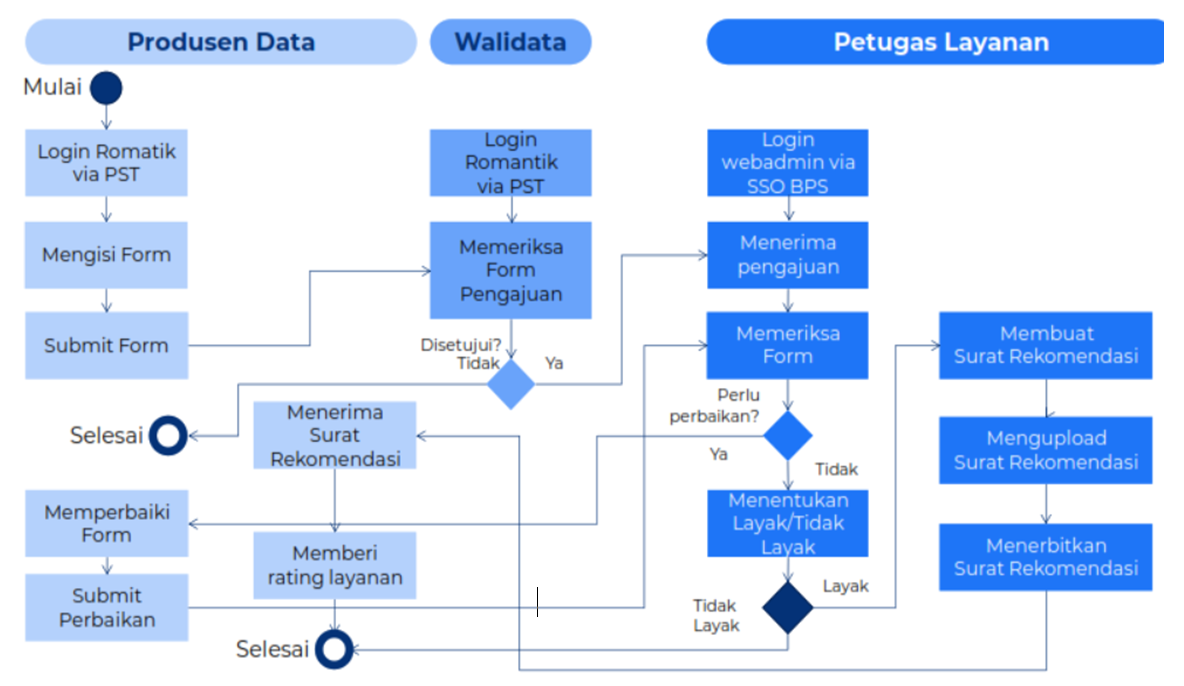 4. Seluruh pengajuan dilakukan melalui aplikasi Romantik BPS di alamat https://romantik.bps.go.id/rekomendasi