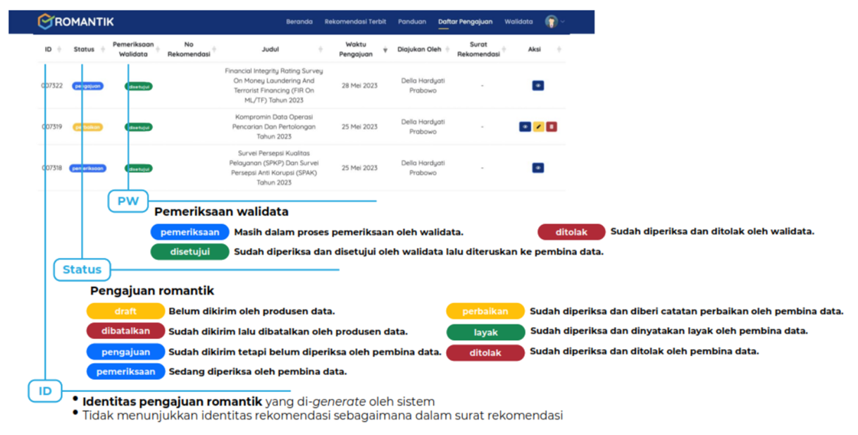 Pemantauan Pengajuan Rekomendasi Statistik Sektoral Oleh Produsen Data