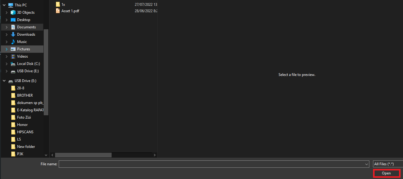 6. Pilih dokumen yang akan dikirim, pilih open atau tekan dua kali pada filenya.