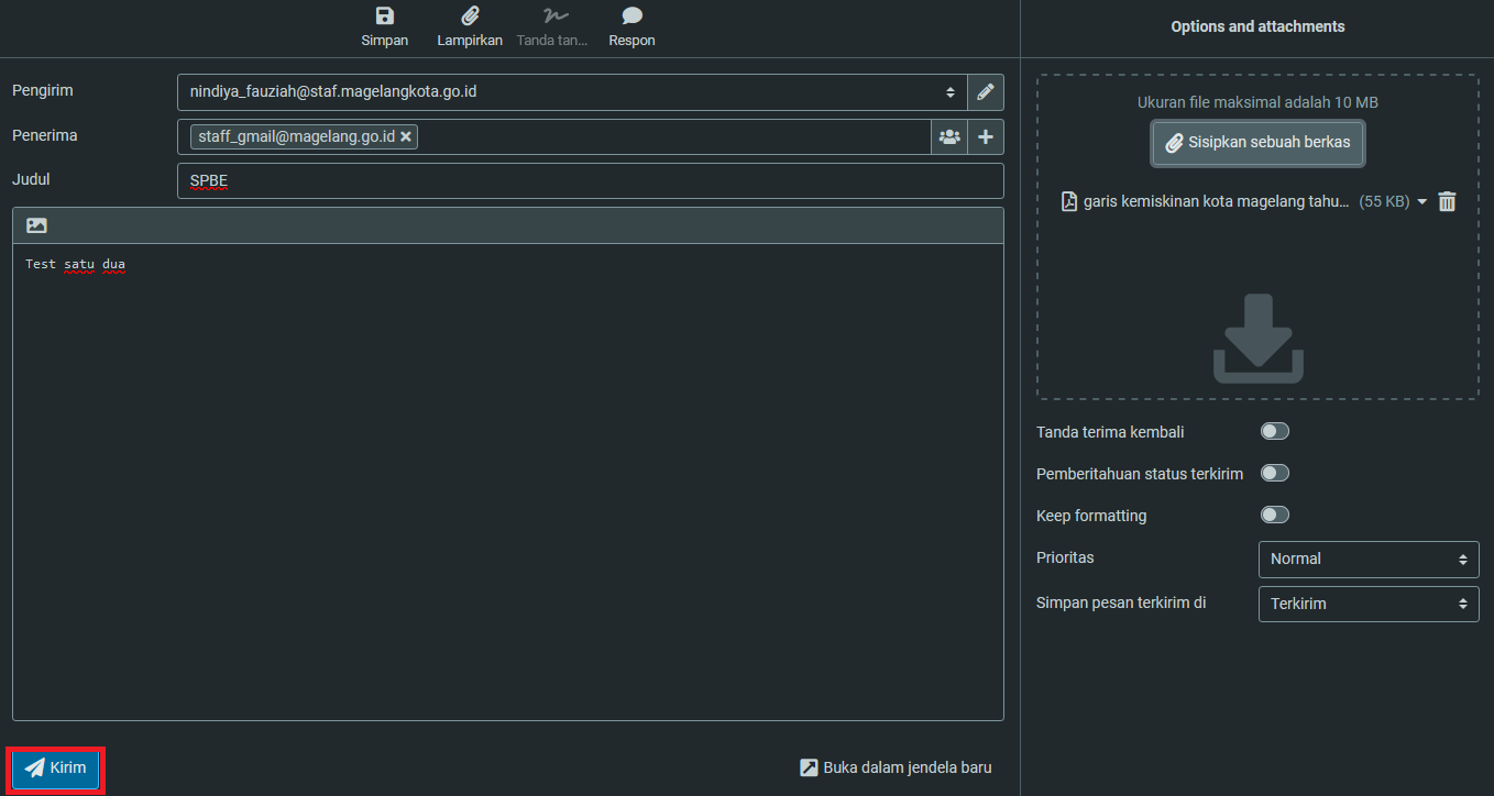 2. Tulis alamat email yang dituju (pada kolom Penerima)