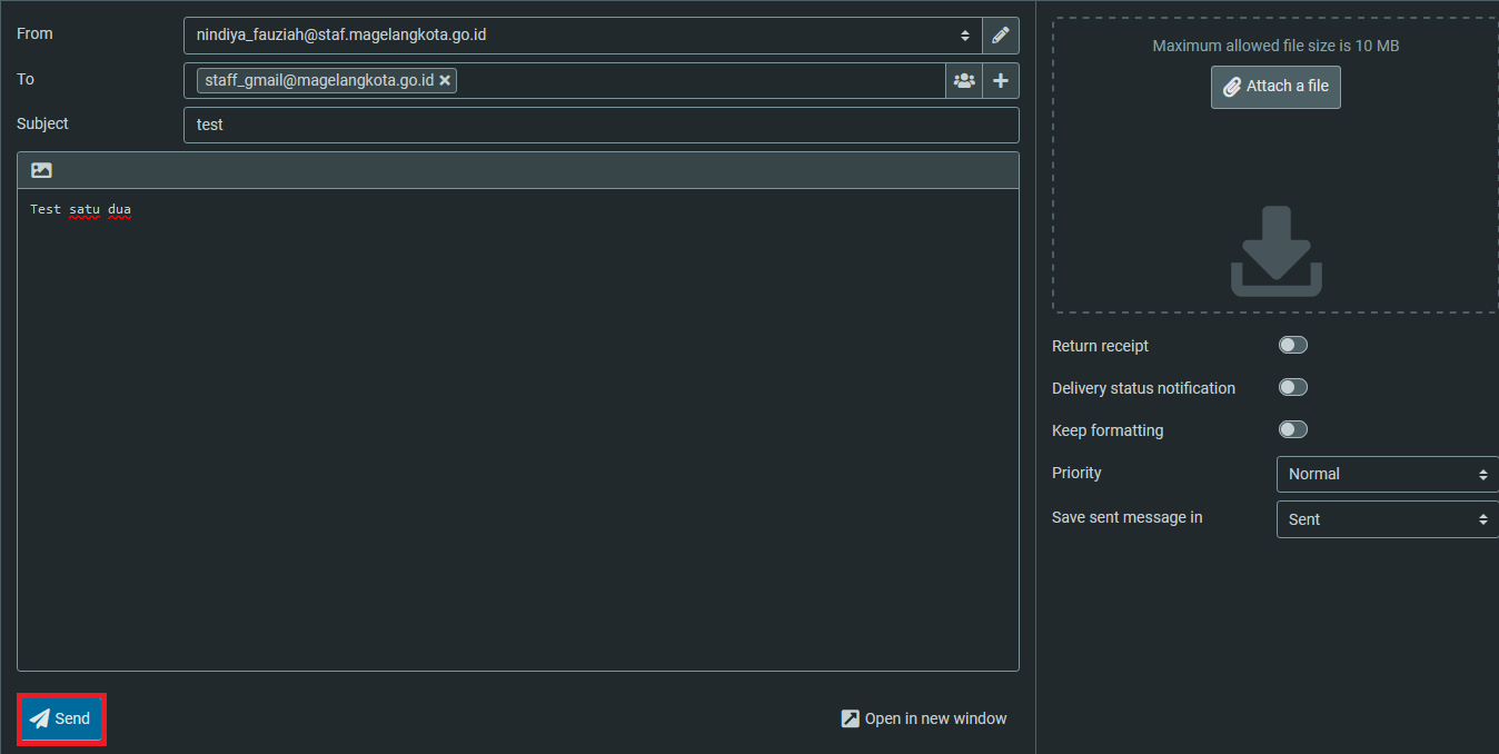 5. Jika ingin mengirim file atau gambar maka pilih Attach a file seperti gambar di bawah ini