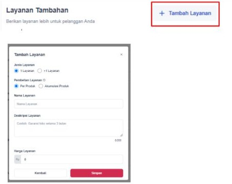 Layanan Tambahan dapat berupa asuransi pengiriman, keamanan produk dan layanan tambahan lainnya.