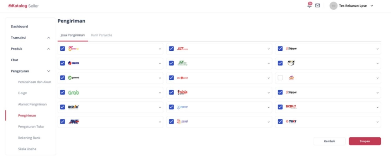 Pilih mitra pengiriman yang diinginkan, lalu klik “Simpan”.