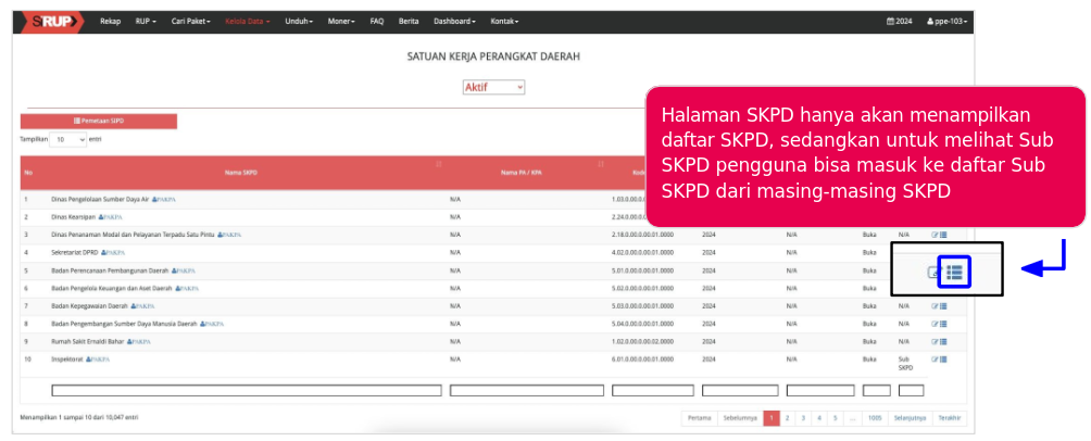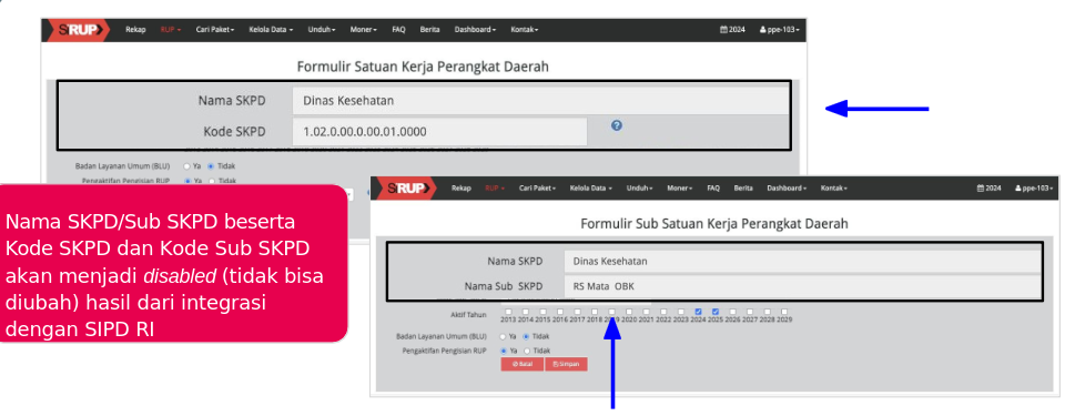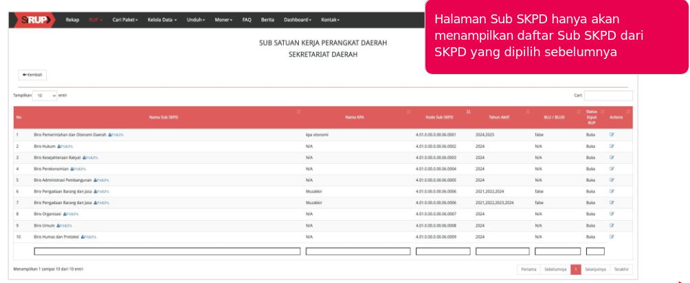- Data SKPD/Sub SKPD akan secara otomatis tersedia di SIRUP dari hasil integrasi dengan aplikasi SIPD RI milik Kementerian Dalam Negeri